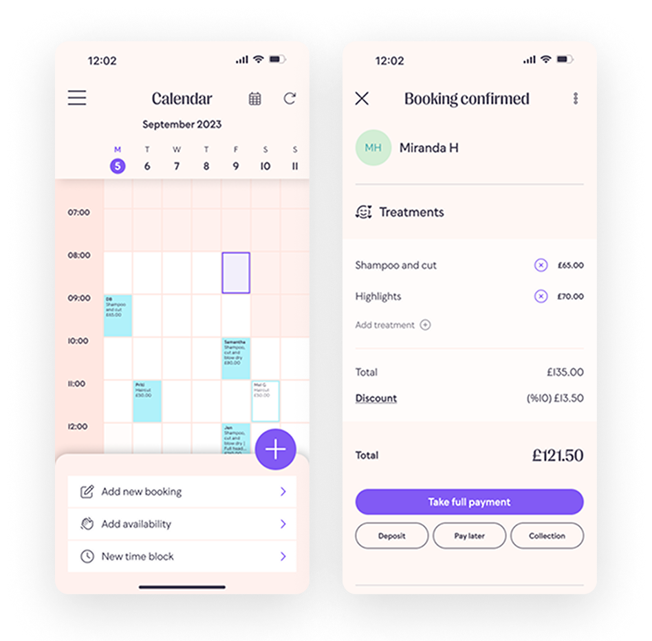 Clients book themselves. Get automatic confirmations and reminders. Take deposits instantly. While you relax.